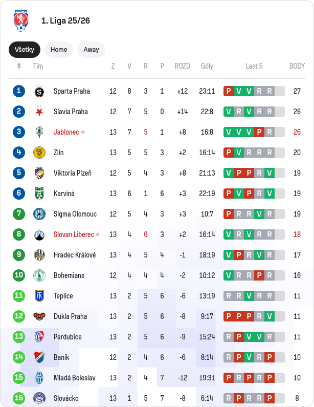Na čelo neúplnej tabuľky poskočil FK Jablonec po víťazstve 2:0 na ihrisku Slovana Liberec. Mužstvo zo severu Čiech vedie s 28 bodmi o jeden pred Spartou Praha, ktorá má zápas k dobru.