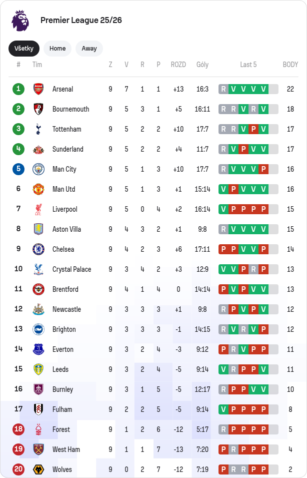 Nováčik súťaže vďaka nemu poskočil na 16. pozíciu, na ktorej má 10 bodov. Wolverhampton stále čaká na prvé víťazstvo v tomto ročníku a s dvoma bodmi je na chvoste ligovej tabuľky. Na druhú priečku poskočil Bournemouth po víťazstve nad Nottinghamom Forest 2:0. Na lídra z Arsenalu stráca štyri body.