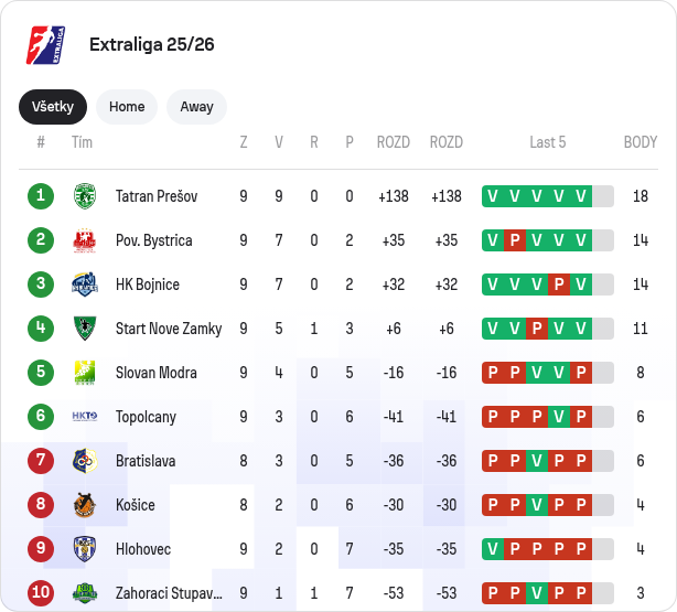 Hádzanári Tatrana Prešov majú aj po deviatich zápasoch Niké Handball Extraligy stopercentnú bilanciu. V sobotnom stretnutí 9. kola zdolali HC Záhoráci jasne 49:27. Bojnice triumfovali nad Topoľčanmi 42:25 a pripísali si siedme víťazstvo v prebiehajúcom ročníku.