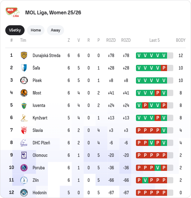 Hádzanárky Sokol Písek zvíťazili v piatom zápase MOL ligy za sebou. V sobotnom stretnutí 6. kola zdolali hráčky MŠK Iuventa Michalovce 32:30. V ďalšom stretnutí si obhajkyne titulu z Baníka Most poradili so Zlínom 33:11.