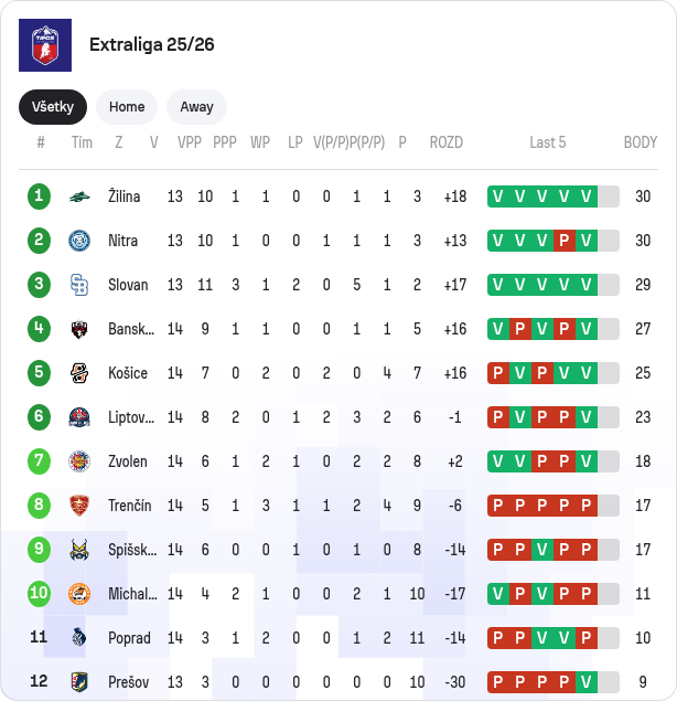 Hokejisti Žiliny triumfovali v 14. kole Tipsport ligy na ľade Prešova 7:4. Hostia zaznamenali šieste víťazstvo za sebou a zostali lídrom súťaže s 33 bodmi. Pre domácich to bola už jedenásta tohtosezónna prehra, s deviatimi bodmi sú na chvoste ligového pelotónu.